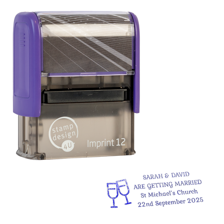 SD4U Imprint 12 | 4 Line Champagne Glass Wedding Rubber Stamp | 47 x 17mm