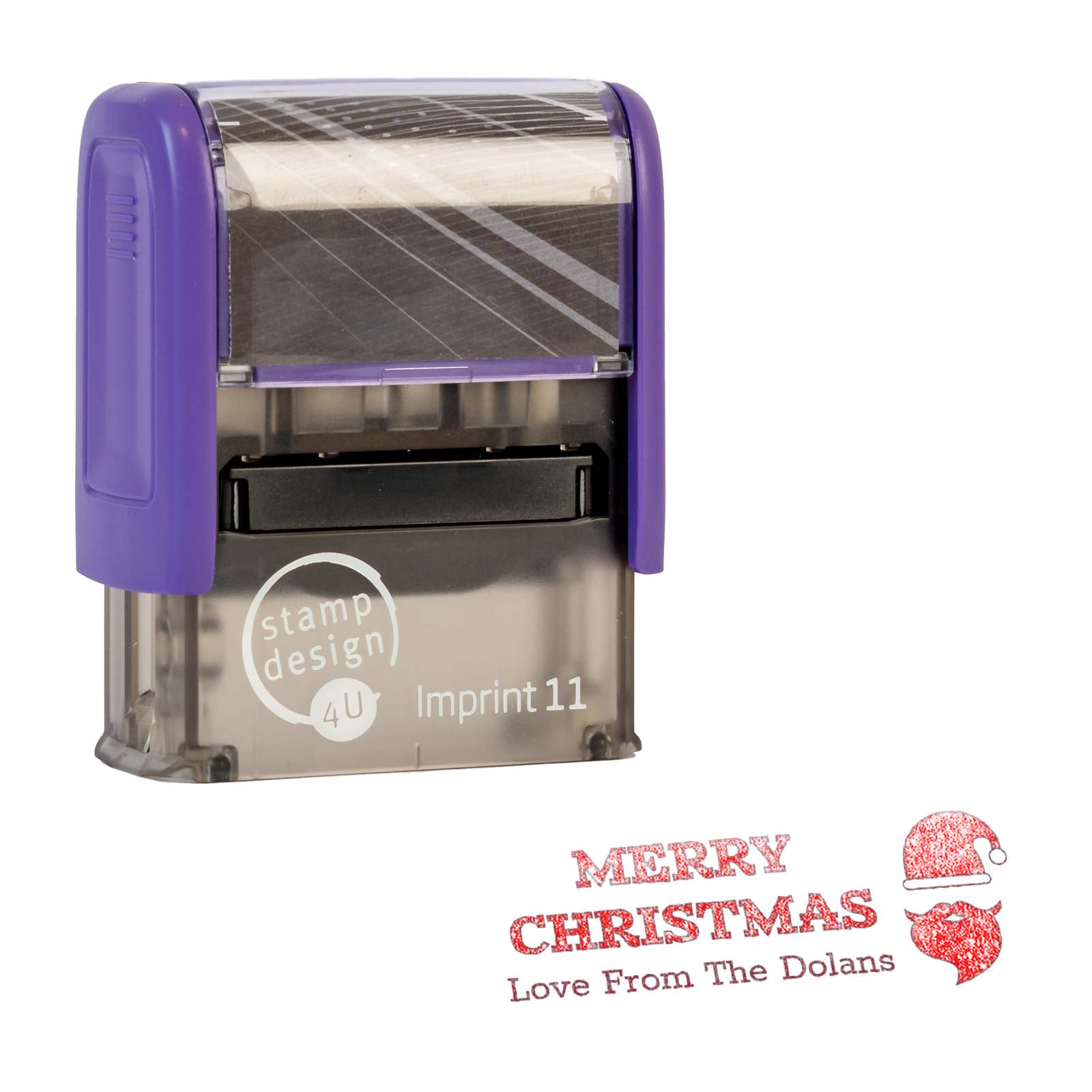 Simple Merry Christmas Santa Design with 1 Line of Custom Text stamp ready to stamp your Christmas papers and tags.