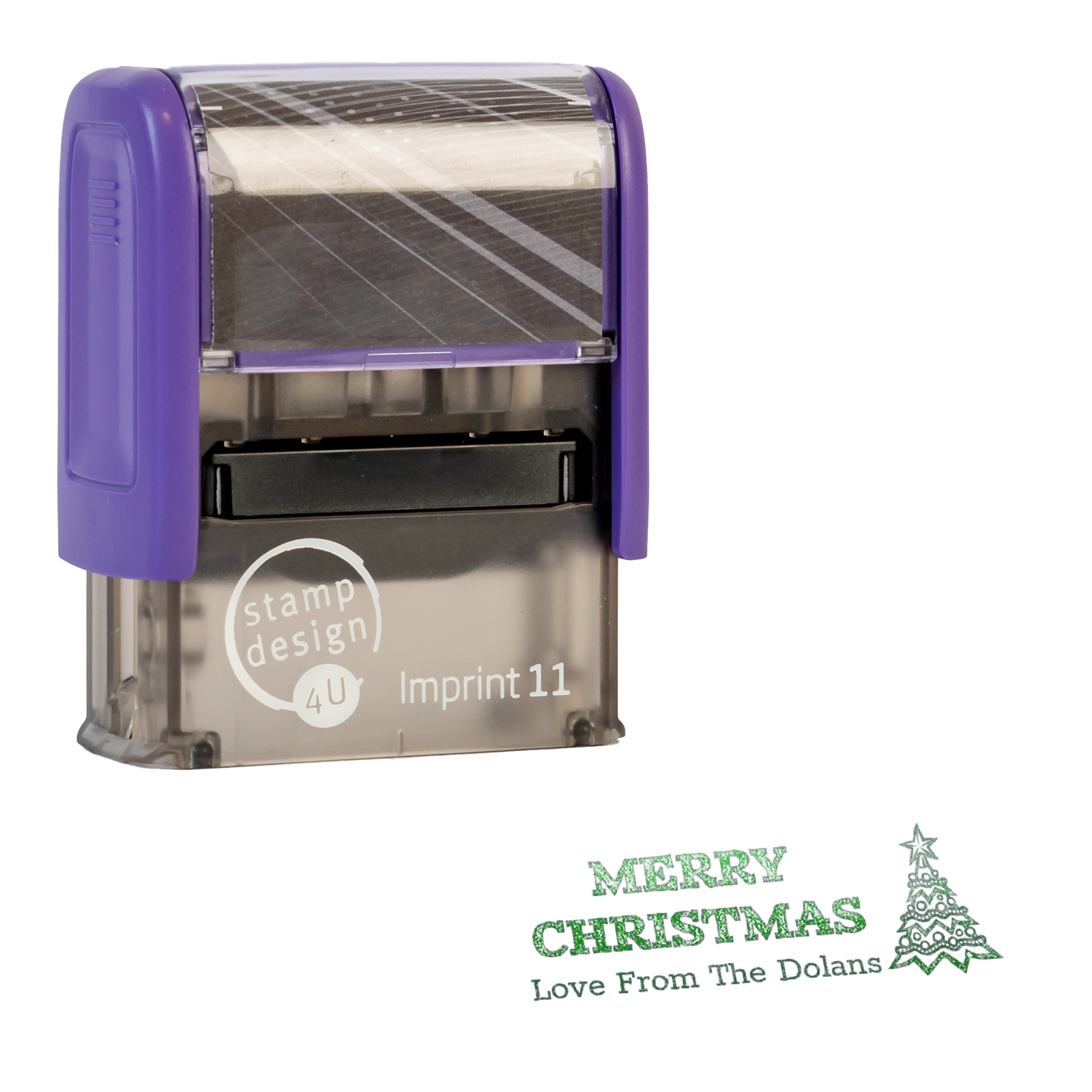 1 line Christmas themed stamp, with Merry Christmas and a Flashy Christmas tree to stamp your Christmas papers and tags simply.