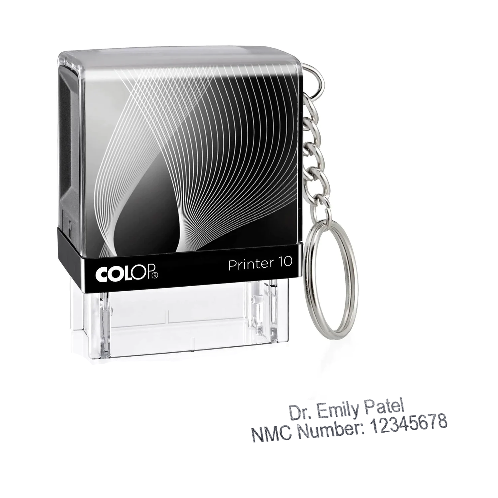 The C10-K Key-ring Stamp can be personalised for a Midwife Stamp, Doctor Stamp, Nurse Stamp, Medical Stamp, NHS Stamp, Physician Stamp or Teacher Stamp.