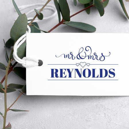 Add a personal and elegant touch to your wedding stationery with the Traxx 9015 Mr & Mrs Stamp. This charming stamp features the "Mr & Mrs" design at the top, followed by a decorative line with 3 hearts, and then your customisable text. A clean, straight line beneath the text adds a polished finishing touch. Perfect for personalising wedding invitations, envelopes, favours, and keepsakes, this stamp brings a stylish and custom detail to your special day.