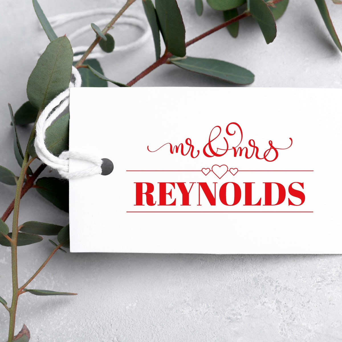 Traxx 9015 Mr & Mrs Stamp | Customisable Name, Message, or Date with Heart Design – Perfect for Weddings, Invitations, and Keepsakes
