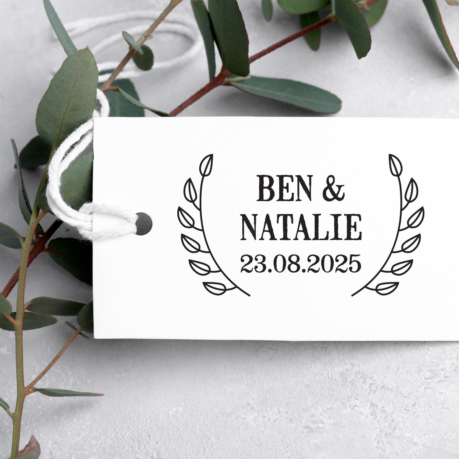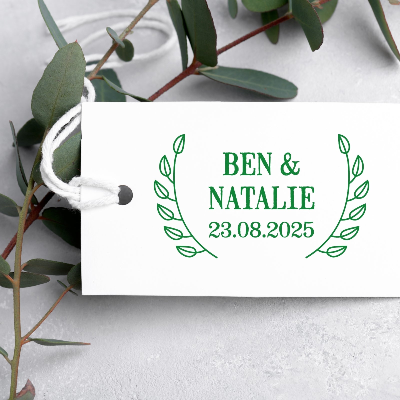 Traxx 9015 Wedding Stamps – Custom Wreath Design with Personalised Names and Date – Ideal for Invitations, Envelopes, or Favours