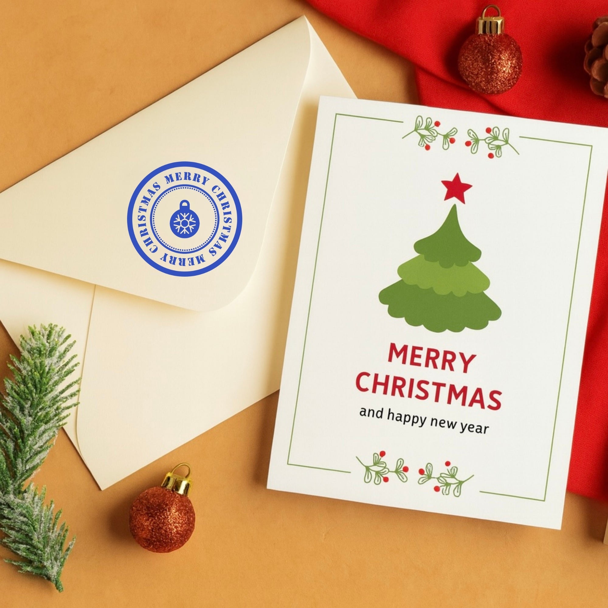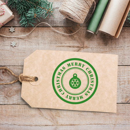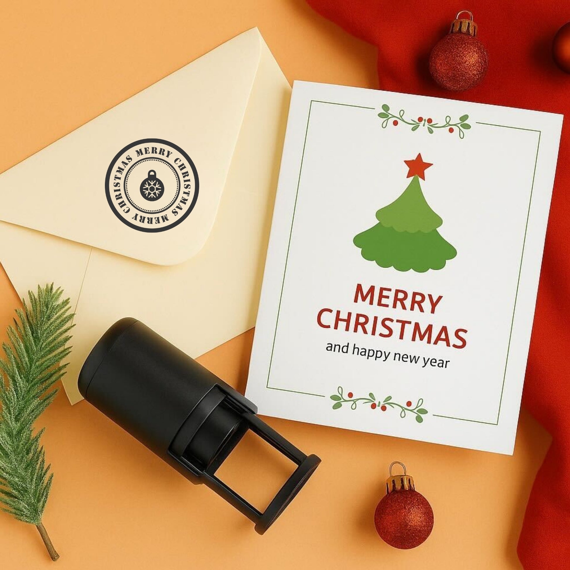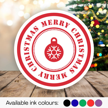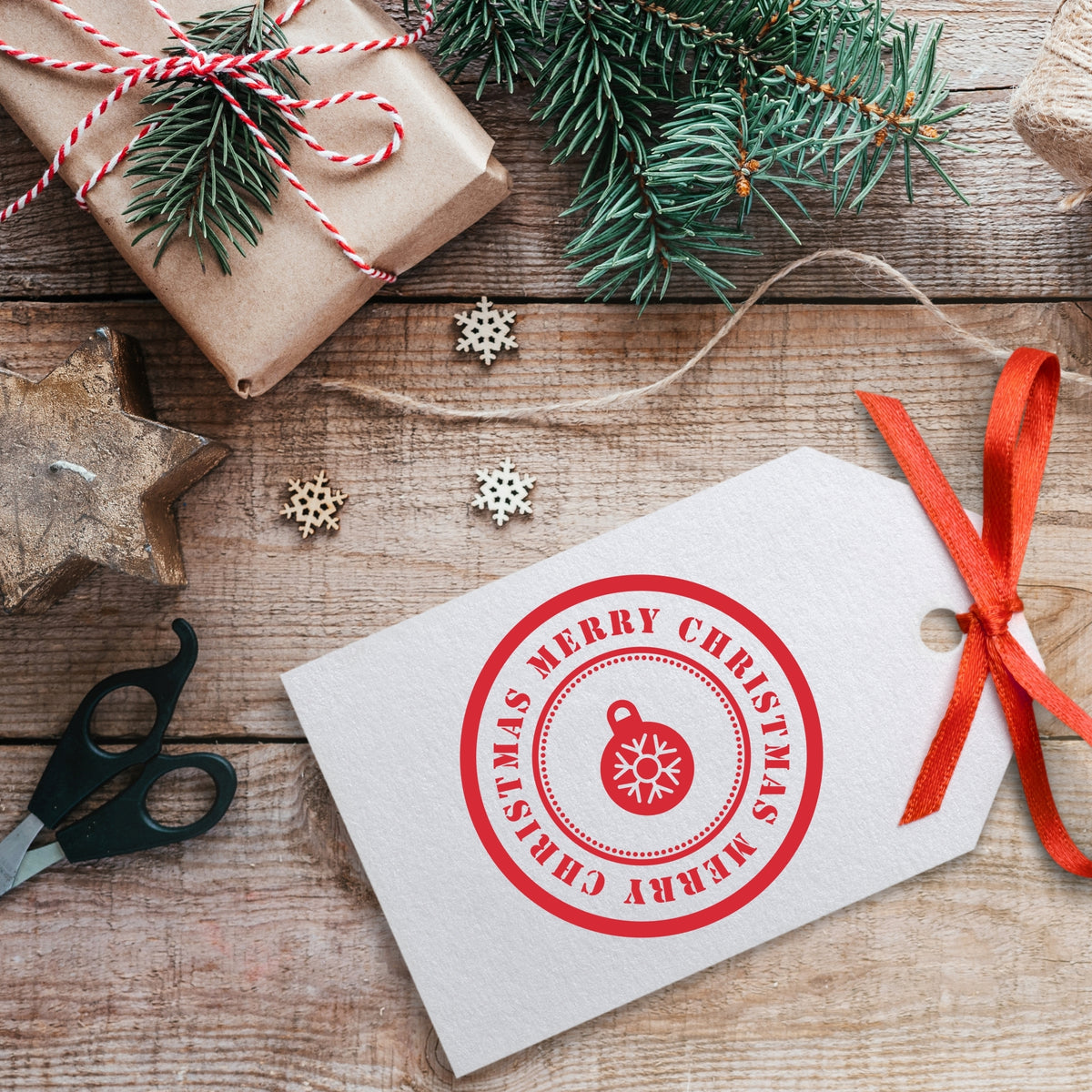Add a festive finishing touch to your holiday cards, gift wrap, and packaging with this charming Merry Christmas self-inking stamp. Featuring a beautiful preset christmas bauble design and classic typography, it's the perfect tool for crafters, small businesses, and anyone looking to add handmade flair to their festive creations.