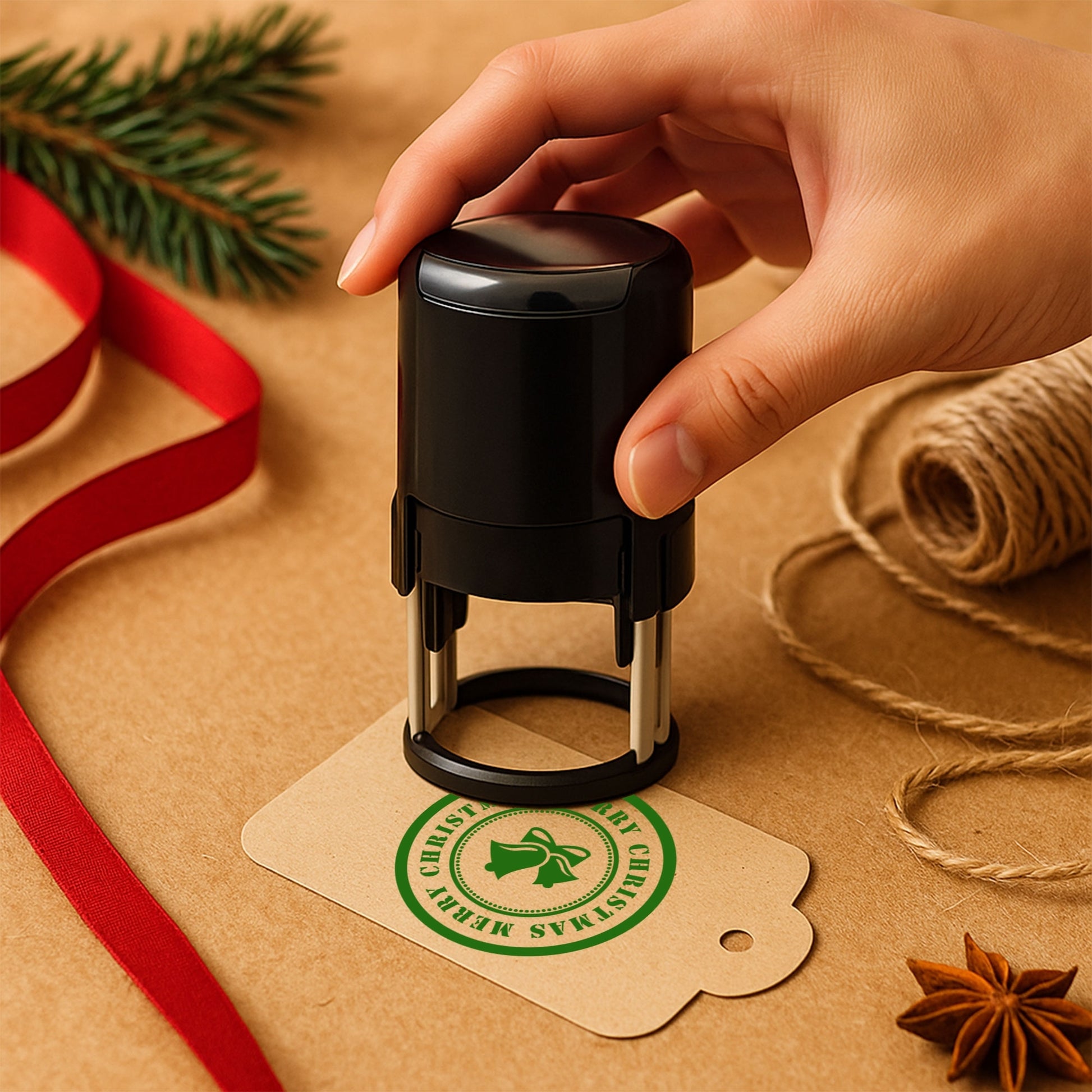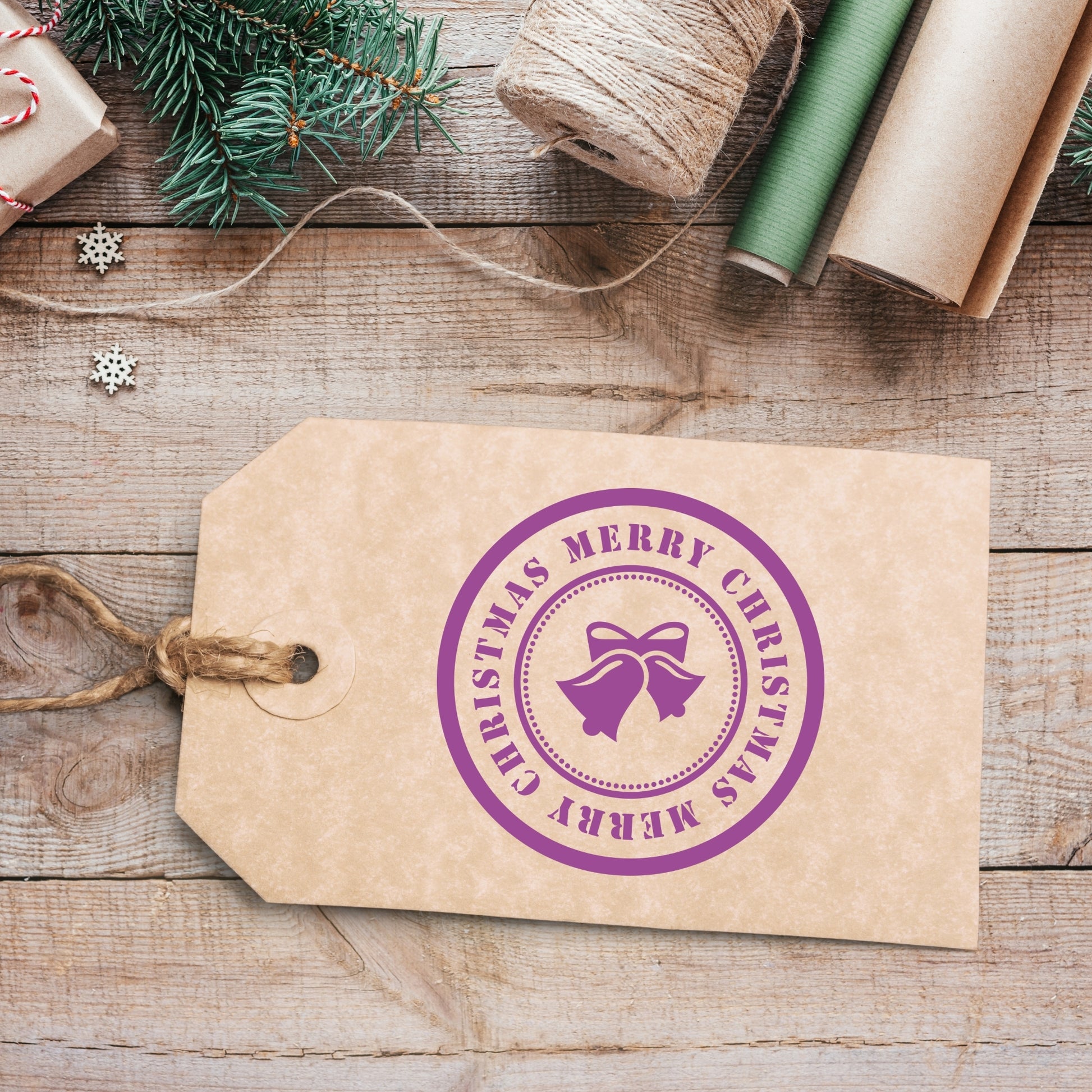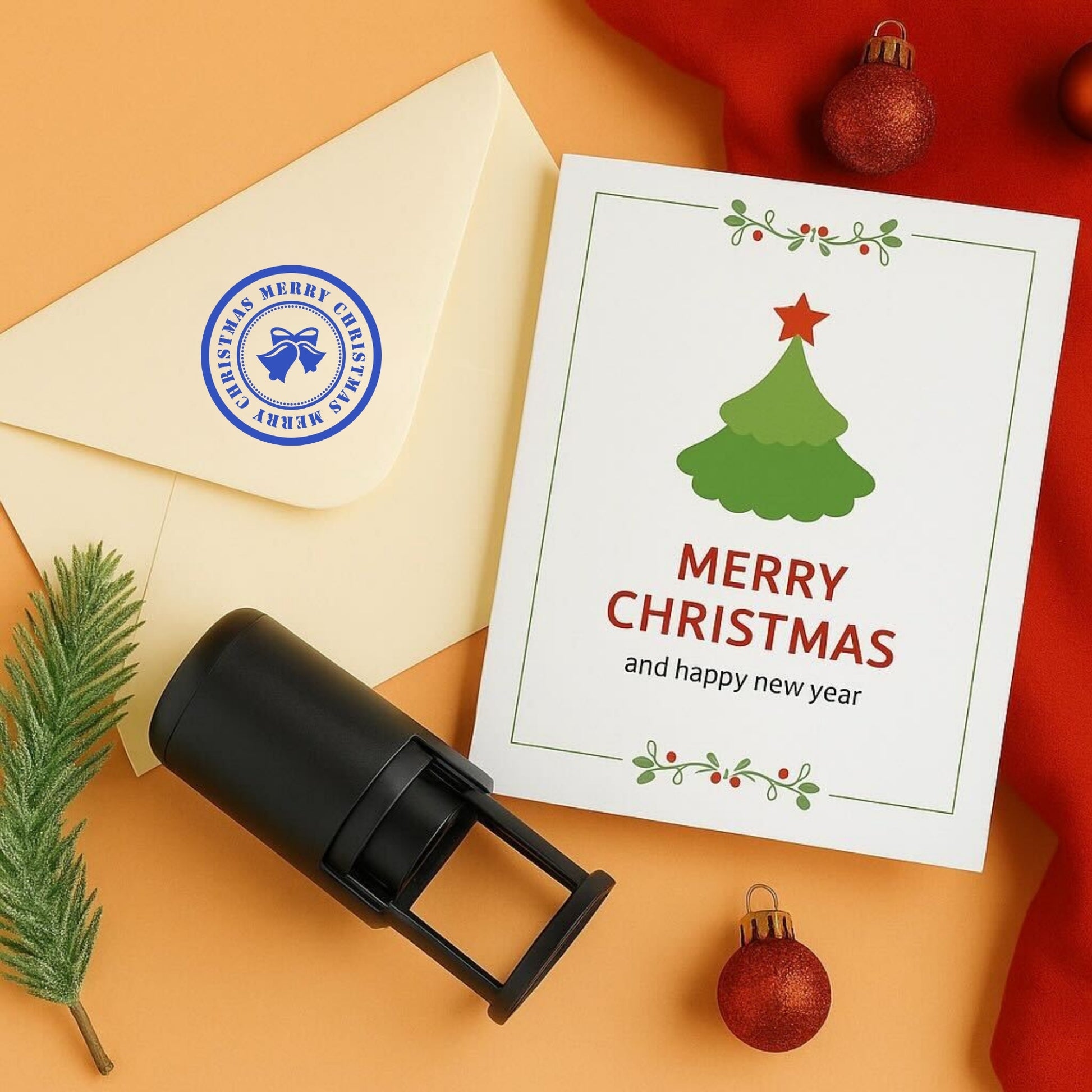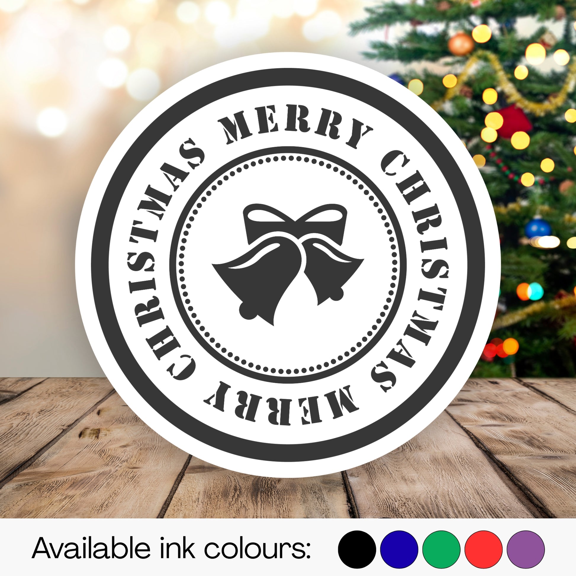 Add a festive finishing touch to your holiday cards, gift wrap, and packaging with this charming Merry Christmas self-inking stamp. Featuring a beautiful preset festive bells design and classic typography, it's the perfect tool for crafters, small businesses, and anyone looking to add handmade flair to their festive creations.