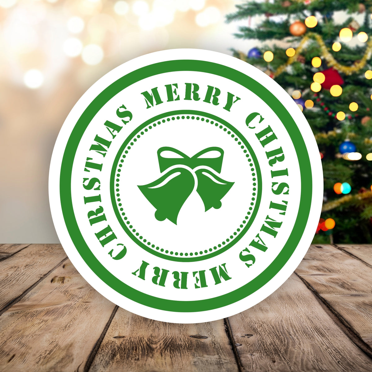 Pre-Set Design: Features the cheerful message “Merry Christmas” surrounding a festive bells design. Please note: this design is not customisable.