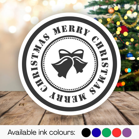 Trodat 4642 'Merry Christmas' Self-Inking Stamp – 42mm Round with Bells Design | Multiple Ink Colours Available