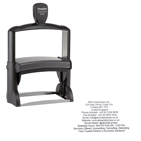 The Trodat Professional 5212 is the ultimate self-inking stamp for UK businesses that need large, highly detailed impressions. With an impression area of 116 x 70mm and the ability to include up to 14 lines of text, this stamp is perfect for multi-line addresses, business information, and detailed logos.